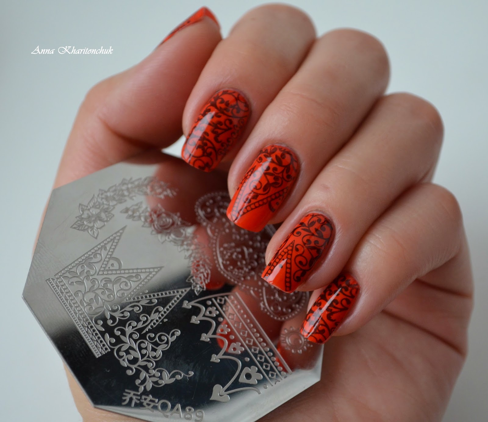 стемпинга использовала черный лак China Glaze Liquid Leather и
